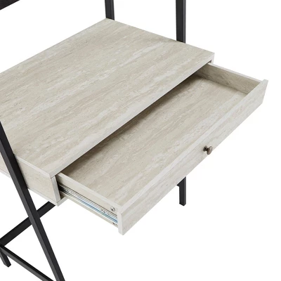 Set up a stylish office space with the Neveah Marble 3-Piece Ladder Desk and Bookcase Set by iNSPIRE Q. This impressive set comes with two bookcases and one desk, equipped with one drawer and two extra shelves, so everything you need is kept in one convenient place. The strong metal frames feature a sleek, matte black finish while the shelves and desk boast an attractive, white faux marble.