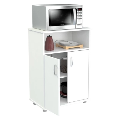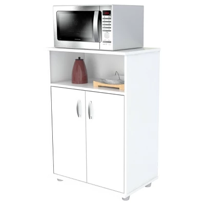 - Microwave/Storage Cabinet by Inval finished in a rich "White" laminates in durable melamine which is stain, heat and scratch resistant.