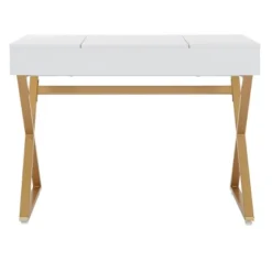 The Contempo Desk’s generous 40″ x 20″ work surface is ideal for your busy home office. The refined lines of the sturdy steel frame will be the focal point in your room. Upper shelf provides space for a monitor.ย Key storage solutions of 2-Desktop drawers for all your small accessories. Available in white laminate with white metal frame, or brown woodgrain laminate with black metal frame.ย Assembly is required.