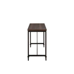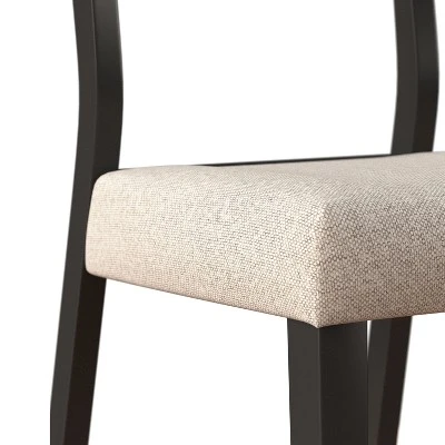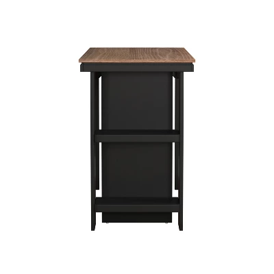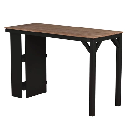 This counter height dining set makes a welcoming eating area with extra storage space on the side. An ideal choice for modern or farmhouse settings, the minimalist table doubles the charm with a black finished base, combined with a Wire Brush oak finished top making for a modern-day charm. The wood constructed table has a pair of open shelves for storage or display space making the most of every inch of space. The non-swivel counter stools are the perfect complement with a wood panel back and footrest for back and foot ease. The wood stools are covered in a taupe fabric adding a touch of sophistication. This rectangular table set easily seats four making it the ideal sitting piece for making good family times. Assembly required.