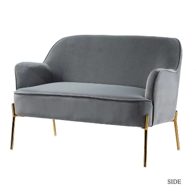 This loveseat chair will provide a fresh and pleasing look to your space and will be the center of attention with piped edges design. The medium density foam filling with a solid and manufactured wood frame provides comfort and support. Shown in a beautiful velvet upholstered fabric, this chair’s sleek lines, comfortable for skin touch, and features an on-trend solid hue that’s bound to blend in with your color scheme. Contemporary metal legs and a linear profile lend itself to serene comfort—perfect addition to small spaces. This small loveseat sofa for you and your loved one brings the soft and warm enjoyment at home. Whether you are looking for an intimate conversation with loved one or a place to stretch out in style, you will be well covered. This loveseat will have no problems blending into your home decoration with its natural and modern style and incredible durability. It’s the perfect pick for bedroom, living room and other scenes.Item Size: 43″Wx29″Dx32.5″H, Seat Size: 42″Wx20.5″Dx18″H.