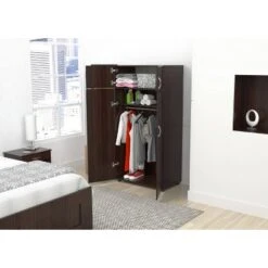 7 Shelf Wardrobe Rikke Two-Tone Wood Storage Cabinet Brown – Baxton Studio