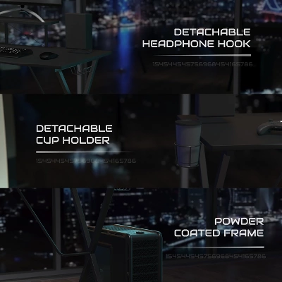 BlackArc Gamma Gaming Desk & Chair Set – Black & Red High Back Gaming Chair With Flip-Up Arms; Desk With Detachable Headphone Hook/Cupholder