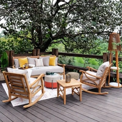 Cambridge Casual Abbington Teak Outdoor Patio Rocking Chair With Cushion