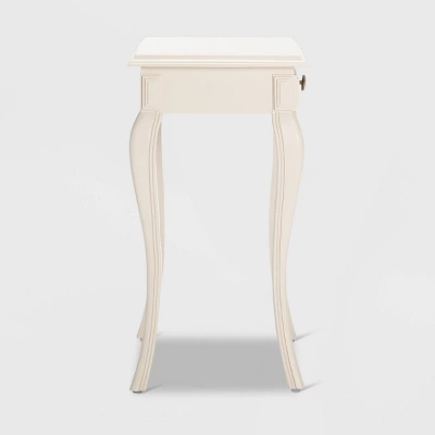 Whether holding books, headphones, or remotes, a simple yet functional bedside table can be difficult to find. This accent table is the storage solution to get the job done. Elegant in its simplicity, a single drawer hides away smaller items, while the sturdy wood top provides a place to set items down for the night. This decorative table also works well as a small accent table in an entryway or hallway, or next to your favorite lazy chair. This white accent table really can do it all.