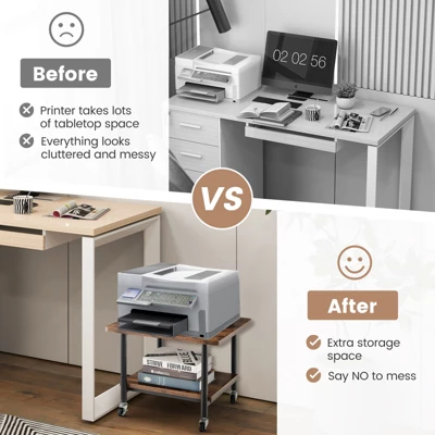 - Offer Extra Storage Shelf: In addition to serving as a printer stand, the unit with 2-tier design provides extra storage space for a record player, plants, photos or cups, thus to achieve versatile use in various scenarios.