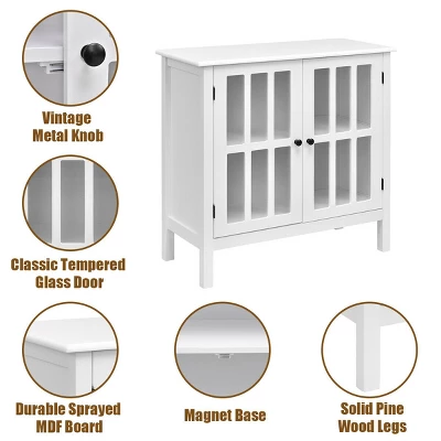 Costway 31'' Storage Buffet Cabinet Glass Door Sideboard Console Table Server Display White