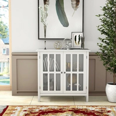 Costway 31'' Storage Buffet Cabinet Glass Door Sideboard Console Table Server Display White -Living Space Shop GUEST 9798c9b2 0cb2 42a7 a9b4 d9054958cd2e