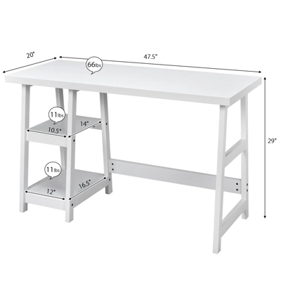 - Easy to Assemble Versatile Table: With detailed assembly instruction and all hardware delivered, it is easy to set up your trestle desk within several minutes with a finished size of 47.5” x 20” x 29”. It could be used as a writing desk, workstation, study table, gaming desk, console table, etc.