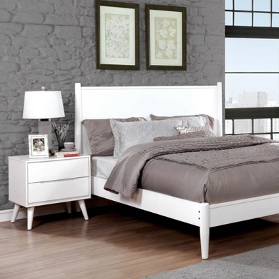 Invigorate your bedroom decor with this Dawna Mid-Century Modern Nightstand from Sun & Pine. Featuring a clean rectangular shape and wood-finish exterior, this rectangle nightstand is supported by charming angled, tapered legs for mid-century style and stability. Built-in drawers with recessed handles offer plenty of space for books, magazines and other essentials – just place this nightstand alongside your coordinating bed or sofa to bring an understated update to your master or guest bedroom, or add it as an end table to a living space.