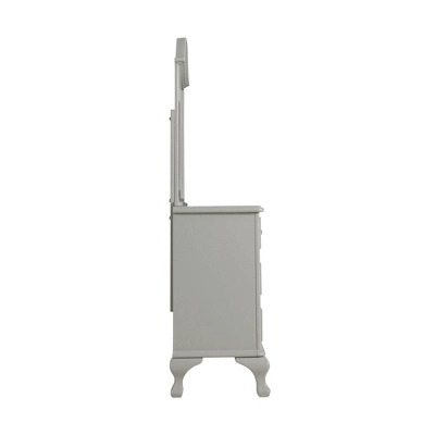 The Picket House Furnishings Jenna Full Panel 5PC Bedroom Set in gray guarantees your little one sweet dreams. This set includes a full bed, chest, nightstand, and dresser with mirror. The case pieces are designed with solid wood frames and dovetail drawers which will withstand years of use. The case pieces are concluded with crystal-like knobs and beautifully arched cabriole feet. This bedroom set is a great foundation to your teen’s bedroom with a touch of style and immense storage.