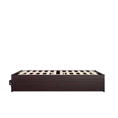 - Included Twin-size trundle rolls easily on wheels and accommodates up to an 8″ twin size mattress