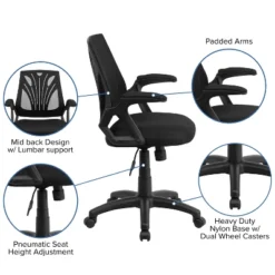 Flash Furniture Mid-Back Designer Black Mesh Swivel Task Office Chair With Open Arms