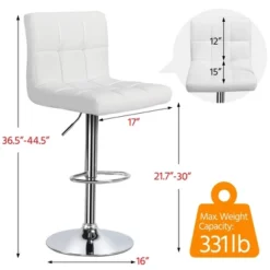 Yaheetech 2pcs Adjustable PU Leather Swivel Stool Armless Chairs With Bigger Base