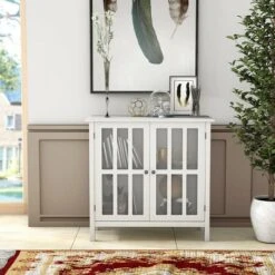 Costway 31” Storage Buffet Cabinet Glass Door Sideboard Console Table Server Display White