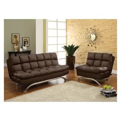 This Mellie Futon Sofa from miBasics gives you the practicality you need in a beautiful, stylish design you are certain to love. This plush modern futon sofa is not only easily converted into a flat bed surface, but its padded tufting creates a cozy spot to rest with its pillowtop inspired effect. An arched chrome leg elevates this futon sofa’s style, giving it modern flair that’s perfect for your modern living area of home office.