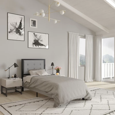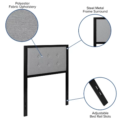 Elegant in its composition, and functional in its application this metal headboard is designed with a classically modern appeal. The tufted fabric upholstery provides a chic and minimalist aesthetic that is complimented by the metal framing. Conveniently crafted adjustable rail slots allow this headboard to be easily attached to your bed frame. Ideal for the 21st century home, this contemporary headboard is thoughtfully created for enduring enjoyment in your relaxed setting.