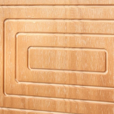 Sophistication and functional storage is provided with the Messina TV Stand form Buylateral. This striking stand features two sliding doors with geometric grooved panels for a modern and interesting look. Middle storage space has a fixed shelf along with a convenient grommet hole for easy cord management. A lower drawer offers additional space for gaming controls, remotes and more. An adjustable shelf is located behind each door making it easy to store various sized components and other items. The pine finish adds a natural look to this stand that accommodates TV’s up to 68”.
