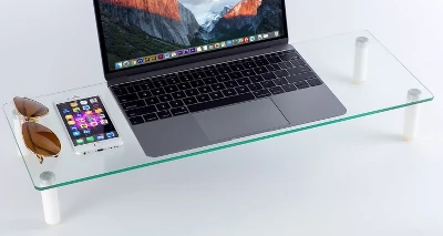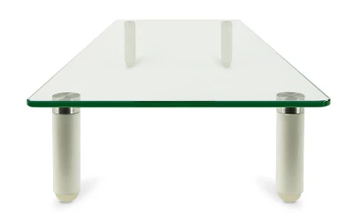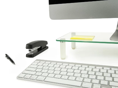 The MI-7263 monitor stand elevates your display to a more comfortable height. Raising your monitor up helps improve ergonomics and reduce neck and eye strain. The contemporary design with premium glass and aluminum materials, make it a perfect fit for any room or office. Opens up desk space by allowing you store accessories under the riser.