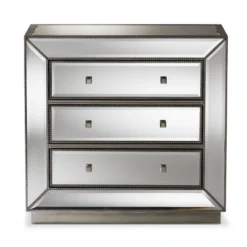 Elgin Brushed Wood And Mirrored Glass 1 Drawer Console Table Silver/Mirror – Baxton Studio