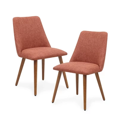 Create a warm and welcoming atmosphere in your dining space with the INK+IVY Nadia Dining Chair Set of 2. Each dining chair features an upholstered seat and back in a rich orange fabric to create a mid-century transitional look. The solid wood legs complement the upholstery to complete the fashionable design and elevate your dining room dĂ©cor. Leg assembly is required. 2 Dining Chairs:19.5″W x 23.75″D x 32.5″H (2)