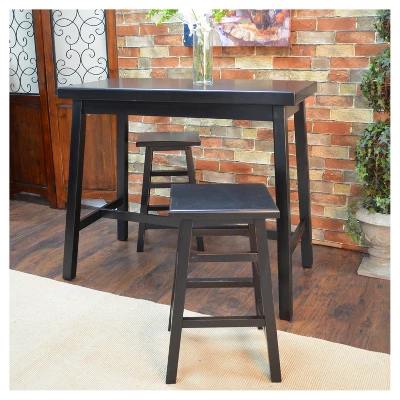 Our lightly distressed Vera bar table provides extra counter space in a small kitchen and a great place for morning coffee. Its strong, simple lines and compact size make it perfect for areas where floor space is limited. The simple design allows this bar to go with many home decors. Available in Antique Black or Walnut